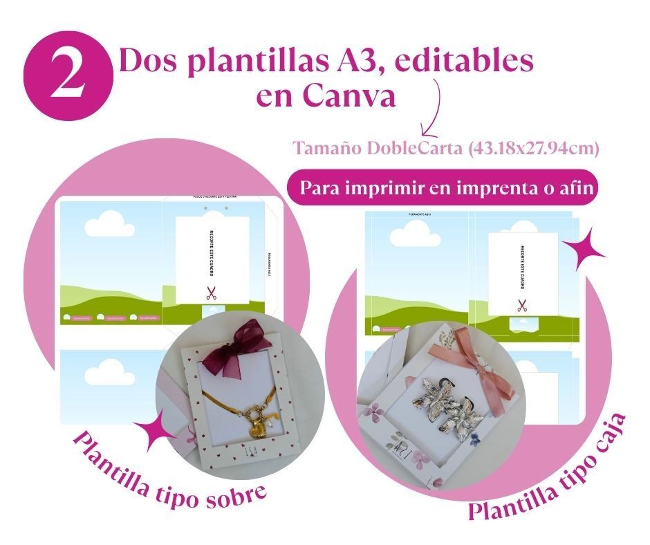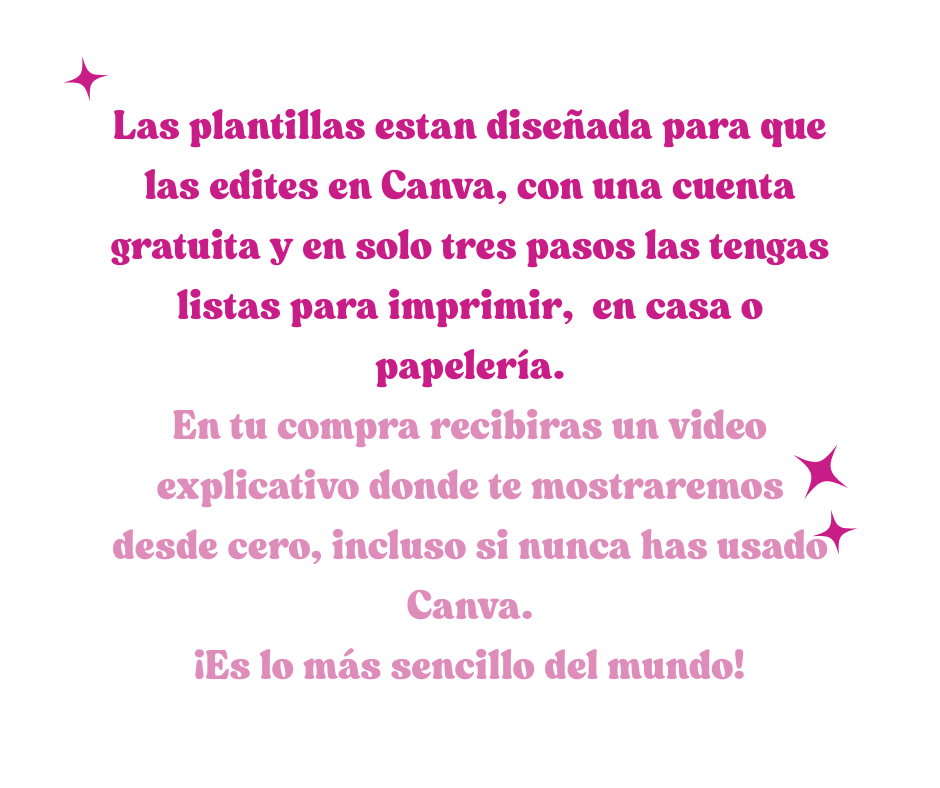 Con esta compra recibes un PDF con 3 links: Uno a una plantilla editable en Canva con las dimensiones para imprimir en hoja A4 opalina o cartulina (impresión común), un segundo con las dimensiones listas para enviar a imprimir en imprenta si quieres un papel y acabado más profesional. Un tercero con un video explicativo paso a paso.